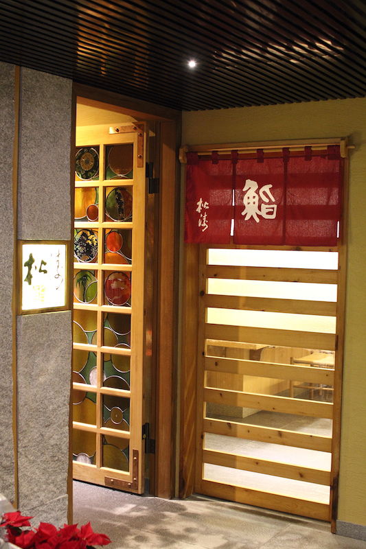 地下一樓除了松濤鮨之外,也有鐵板燒共兩家餐廳。松濤鮨的本店在上海,台灣的是新開的分店,店長是日籍師傅廣部祐之,曾在北市的壽司名店服務,後來被挖角到上海的松濤鮨,直到台灣店開設後,來台擔任店長。
