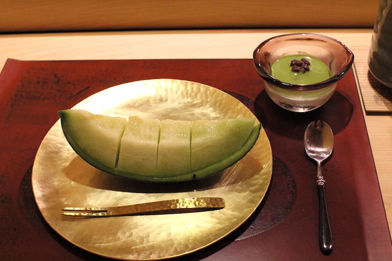 最後的甜點則是香甜的哈密瓜與抹茶奶酪,這季節還能吃到這麼甜的哈密瓜也不容易。以中午1500元的價位來說,能嘗到這些品質不俗的魚料,是相當划算的選擇,不過每天的魚料不同,每個人吃的握壽司也有差異。如友人吃到大腹,而我只吃到中腹,便或許是每日魚料不同所造成的差異。晚餐的部份則要三千起跳,著實也不便宜,喜歡吃握壽司的話,還是趁中午有便宜的午餐來吃吧。