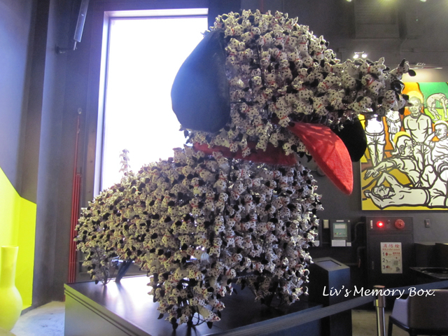 而在裝置藝術部分,最吸睛的莫過於這隻由眾多小狗布娃娃拼成的大狗狗。