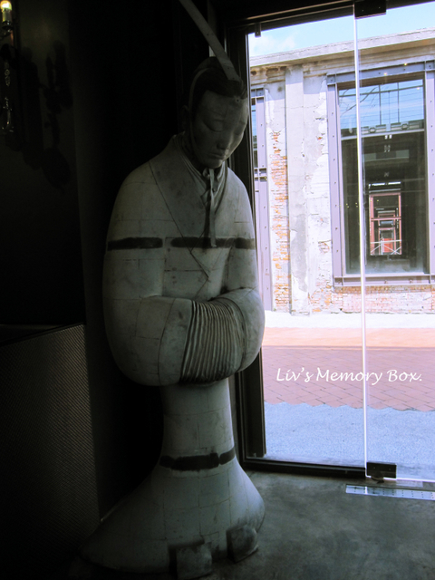 矗立著一個詭異的秦代人俑,塑造出一種靜謐的氣氛。