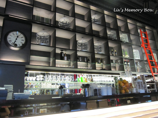 擺在吧台後方的整片牆是大大格的櫃子,不像一般小品餐廳擺滿了杯盤,