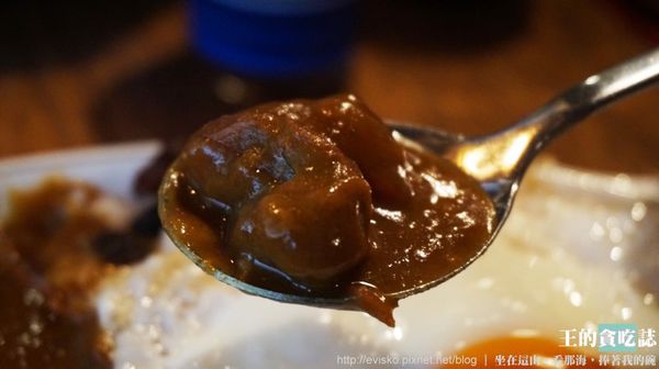 咖哩風味有些辛辣卻不會過辣,荷包蛋可以選擇半熟或全熟,飯跟咖哩可以搭配葡萄乾吃又鹹又甜。吃著吃著,其實你會發現醬料中有些許粗顆粒,這樣的顆粒感也讓咖哩醬汁在味覺上更厚實。