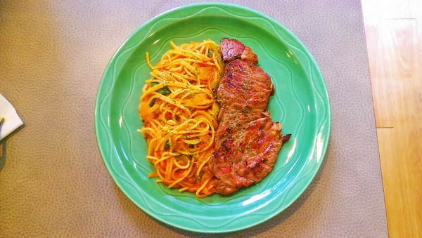 二話不說點了肉最大塊的牛排義大利麵XD