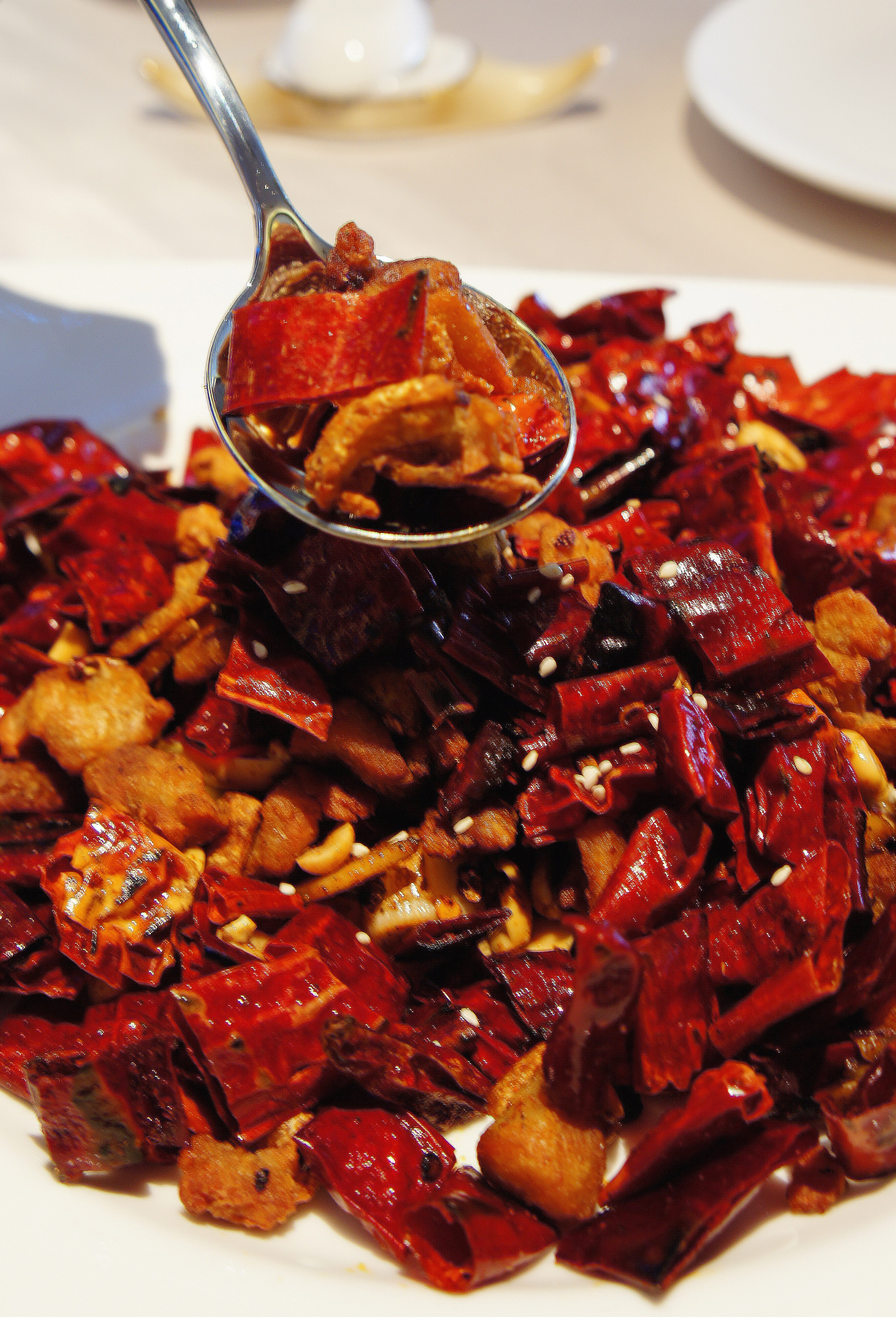 名字很有趣吧!歌樂山位在重慶,當地產的童子雞非常有名,當地人常以各種辣椒與香料慢火乾煸,吃起來酥脆鹹香,帶嗆氣,台灣好像沒見過這種菜!