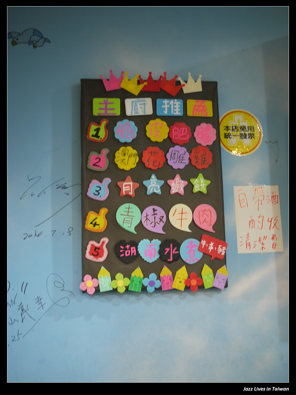 牆上掛著是新上市商品與主廚推薦, 還有些名人的簽名, 記得剛開幕時有看到賀一航, 後來就沒再留意有誰的簽名了,