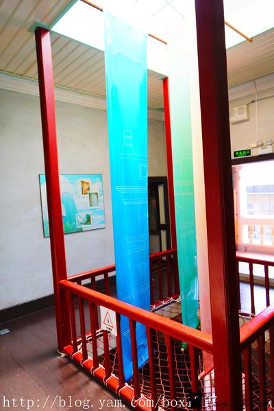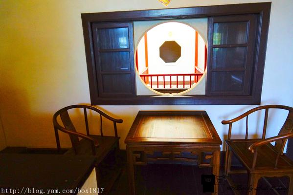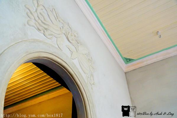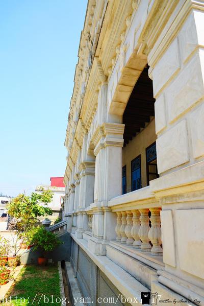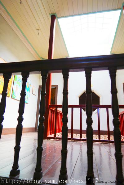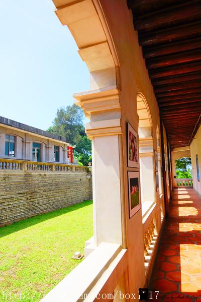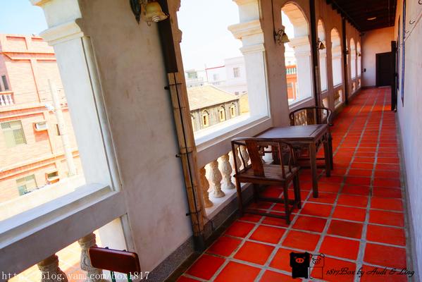 二層樓建築格局宏大,正面為七開間,大小圓拱有類似西洋建築列柱意象,