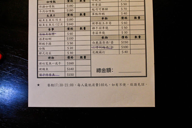 營業時間17:30~21:00,低銷140元由於沒有來過店員簡單的介紹菜單