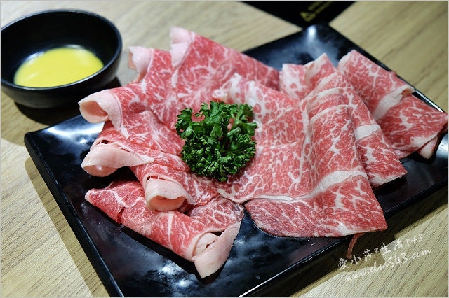 左邊帶點油花襯邊的是PR板腱牛,右邊油花猶如大理石斑紋的是牛小排,份量約二人份,再搭上海鮮食材,我覺得很足夠囉~