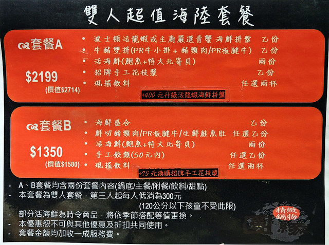 既然都說是主打海鮮了,就先來看看這次點的雙人超值海陸套餐$2199吧!