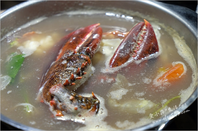 海鮮的部份用昆布干貝鍋來煮可以更煮得出海鮮的甘甜,依序把龍蝦一一放下去,外殼變紅後再稍煮一下就可以起鍋囉!!