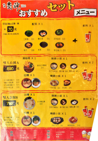 菜單,主要為味噌、鹽味拉麵,另外還有沾麵和湯咖喱,咖喱也有加飯服務唷