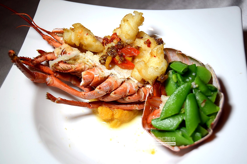 龍蝦肉是用紅蔥頭和沙茶醬下去先拌炒,吃起來是外酥內Q,單吃口味偏重,可以搭配鮮甜的甜豆一起食用,一整個就是脆和彈牙!在龍蝦殼下面的泥狀物,更是不能放過,看起來好像是黃芥末醬,但吃了一口又讓安魯魯第三次驚喜了! 這是用椰絲、椰奶和地瓜泥一起烹煮的醬汁,椰子的香氣和地瓜的甜味沾著龍蝦或甜豆一起入口真是絕配!!