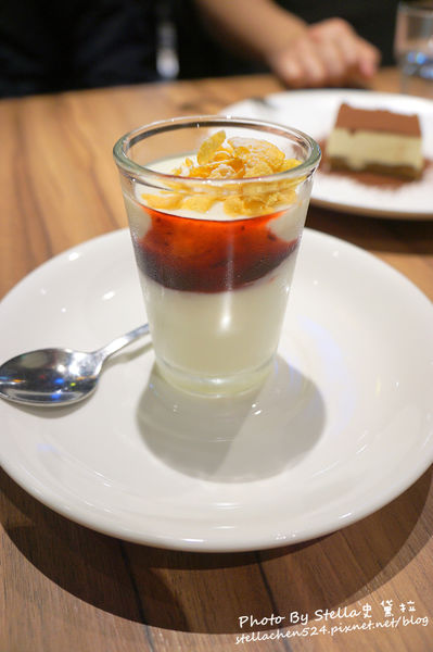 招待甜點有:提拉米蘇、野莓優格(擇一)