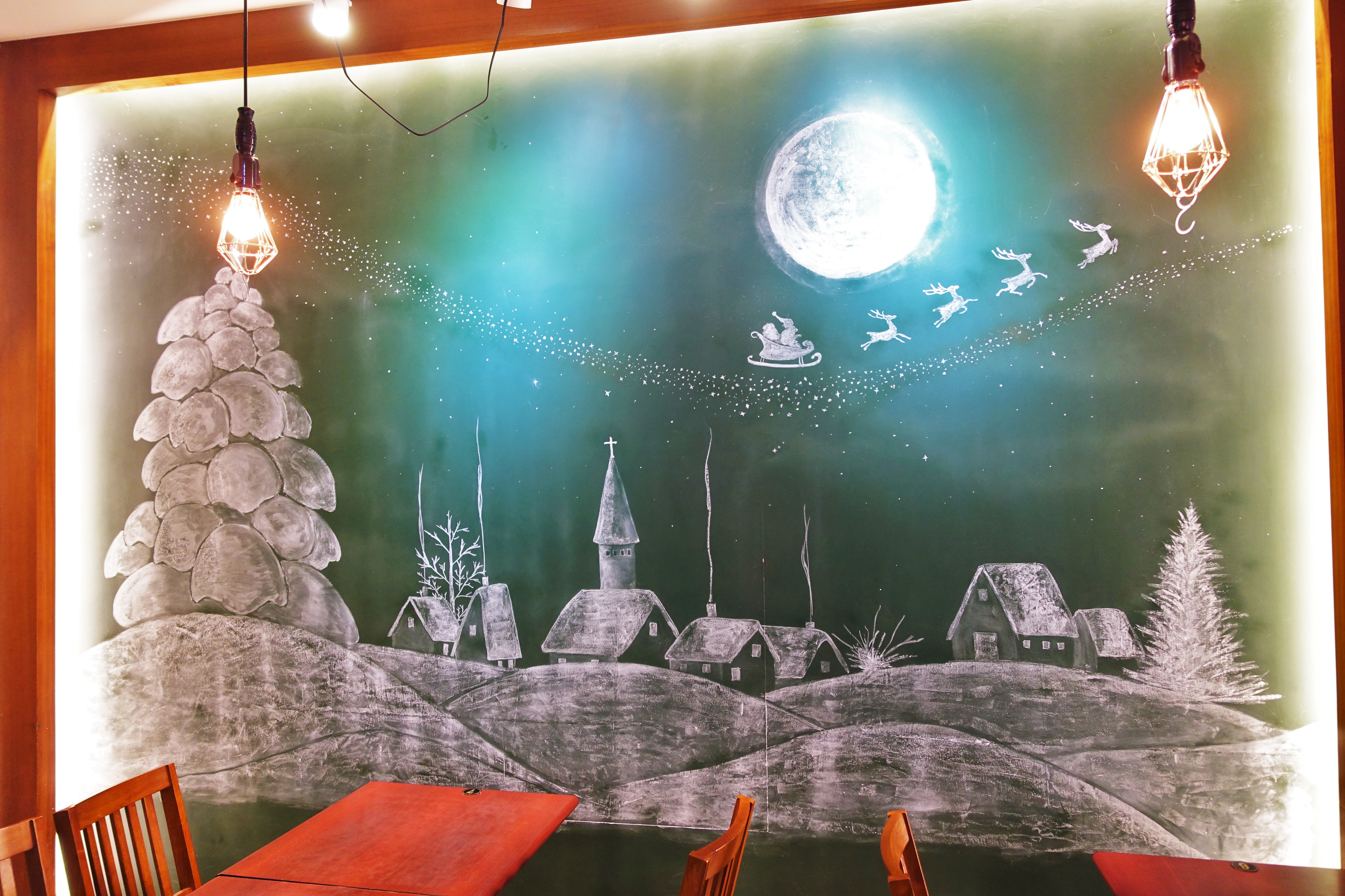 暮倪有個非常特別的地方,就是店內右側小黑板有老闆的美術作品,老闆本身是復興美工畢業,小黑板會隨著大節日的來臨而有不一樣的創作。