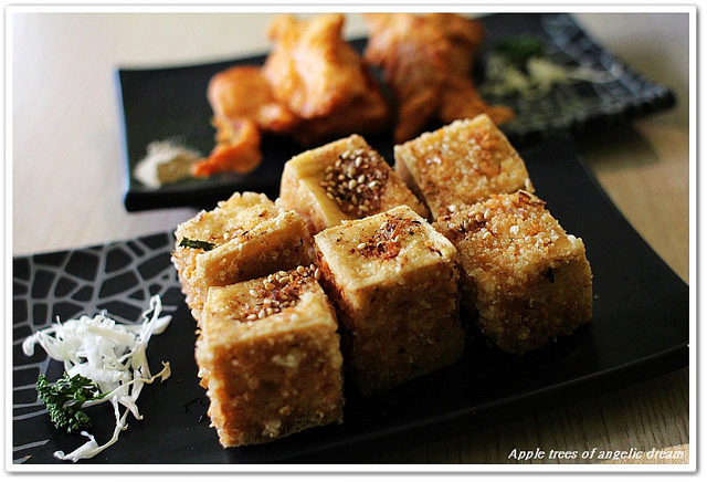 炸豆腐 NT:30,他們家的炸豆腐很特別,外皮酥酥的口感有白芝麻,咬下去口感很棒