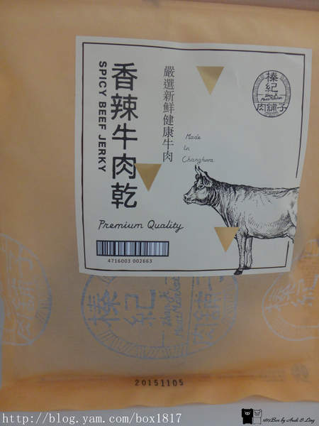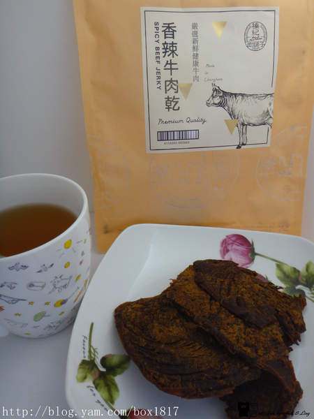 香辣牛肉乾,產品正反面包裝也都清楚標示。