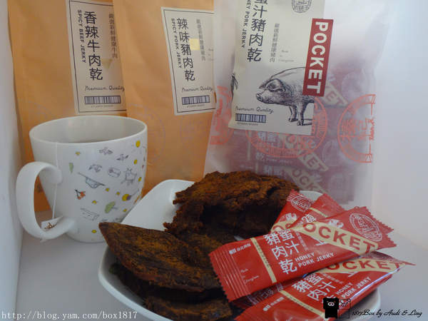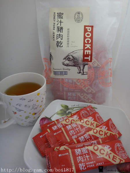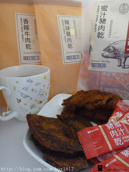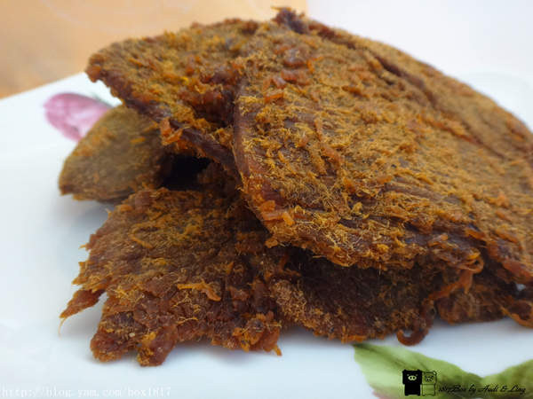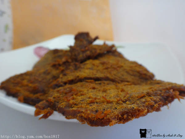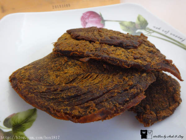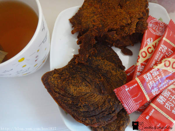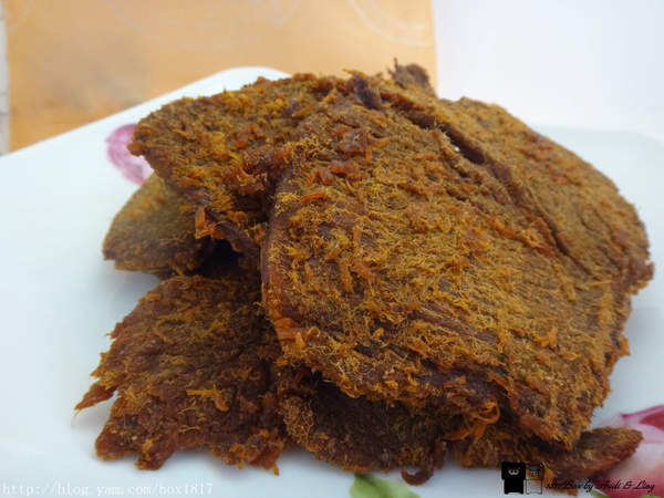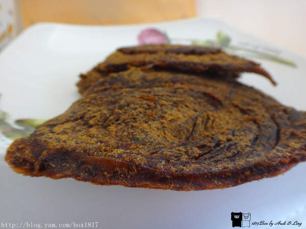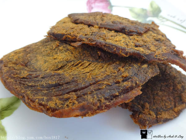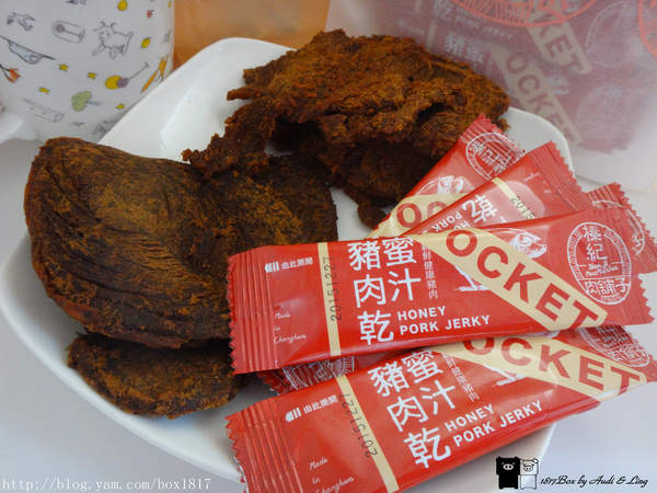 蜜汁豬肉乾吃起來有肉本身的香氣,加上蜜汁的微甜,厚度切得剛剛好,不會太甜也不會太膩,