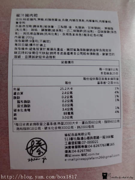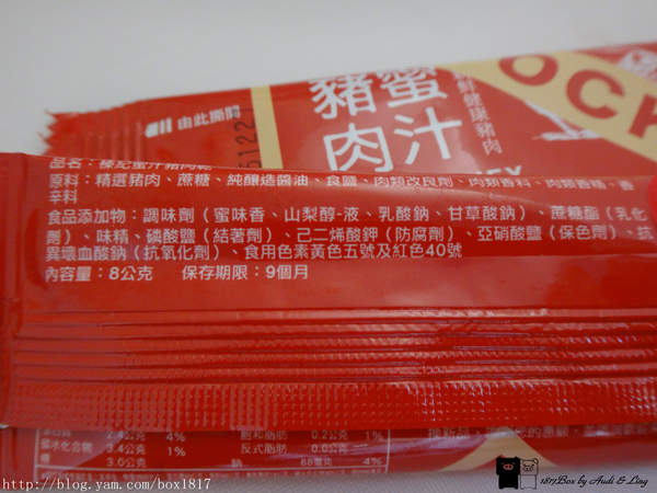 蜜汁豬肉乾隨手包做成單片包裝,每個獨立包裝上面也都標示的很仔細,