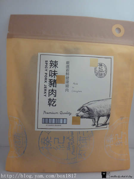辣味豬肉乾,產品包裝正反面也都標示的很清楚。