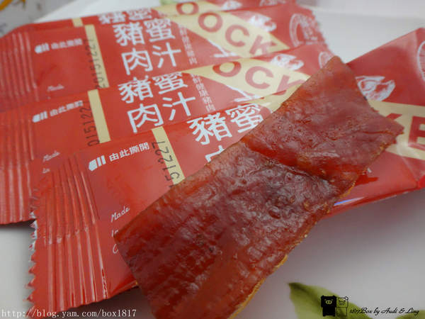 打開一個包裝拍整片讓大家參考,蜜汁豬肉乾隨手包在食用上的優點是不沾手,