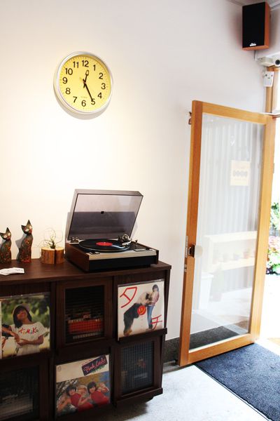 ▲門口有老唱盤裝飾,還有一些復古的圖片,散發著日式古早味