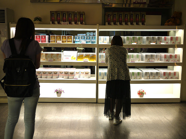 走進來深處,其實就是一個小型的商品展示區與賣場,各種不同的面膜都可以在這邊看到,瞧瞧這兩位小女生,看得目不轉睛呢。