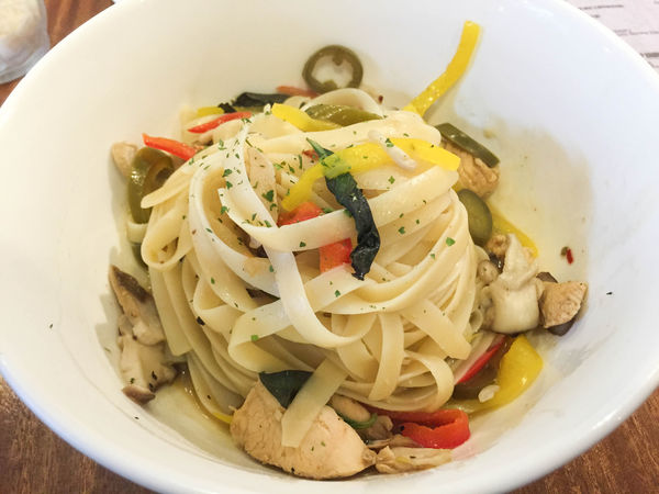 扁麵吸附醬汁能力薄弱不太討喜,而偏清炒的風格在舌尖上除了凸顯出辣覺外近無別味,