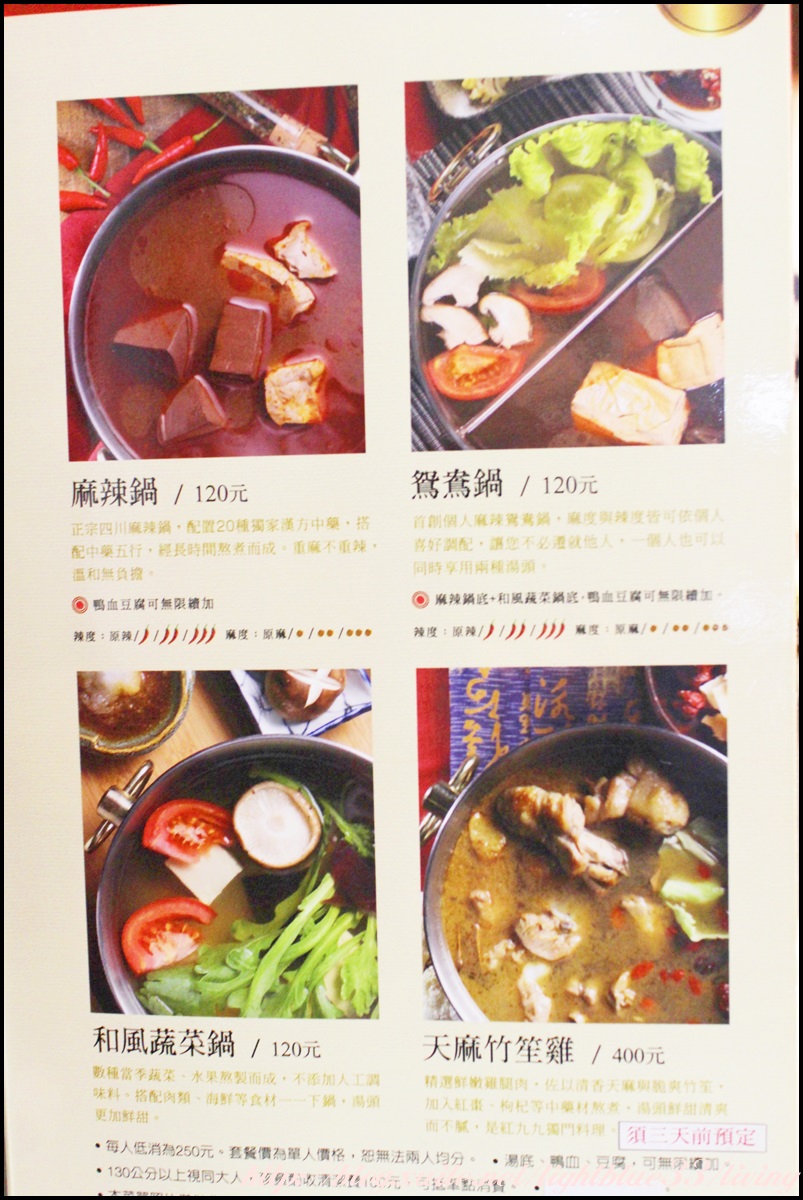 湯底有四種可以選,套餐的話則是可以選鴛鴦鍋或麻辣鍋不必再加價,麻辣鍋底的鴨血跟豆腐可以無限續加,太令人開心了