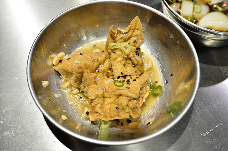 涼拌黃豆芽與蔥絲還有辣醬,也是涼拌的小菜,雖然簡單但吃起來很清爽,可以搭配燒肉一起吃。