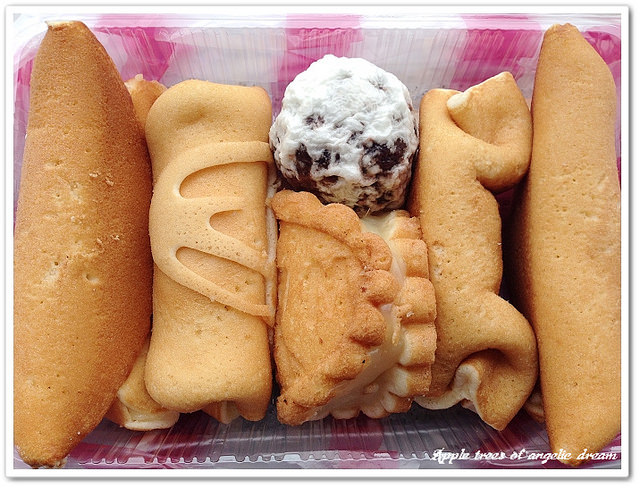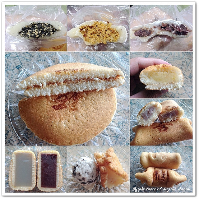 然後裡頭的餡料有(白豆沙、紅豆沙、芋頭沙、綠豆沙、花生、草莓、奶油等)