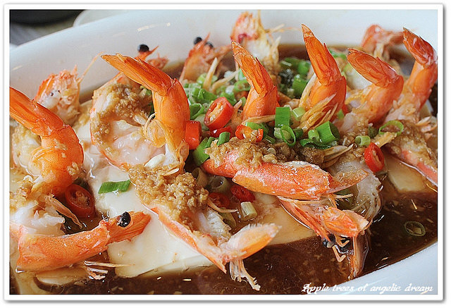 這道是服務生推薦的鮮蝦吃起來鮮甜Q彈搭配蒜蓉醬料和嫩豆腐,整個就是超級下飯