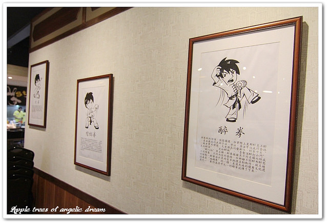 牆面上掛著各種拳法的介紹,整體裝潢非常用心,功夫主題餐廳果然名不虛傳