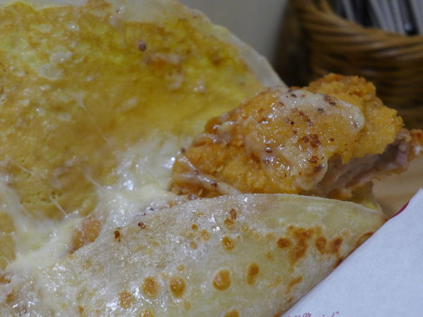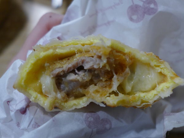 翻開看一下發現原來顏色美麗的乳酪捲餅裡也有打上蛋液,
