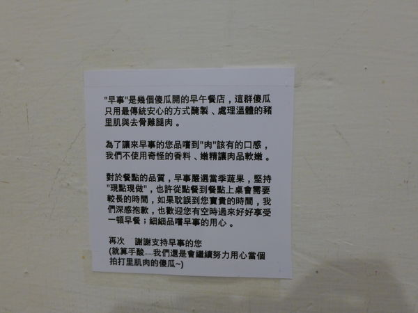 店家的牆壁上還印有小紙條,說明開設的理念和對於食物品質的堅持,