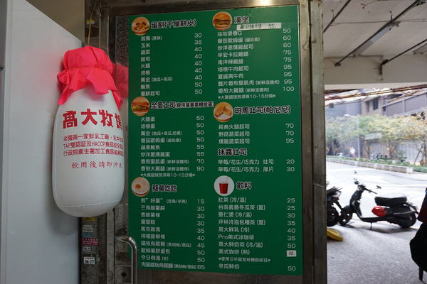 | 本日尖叫美食 | 薯餅起司蛋餅、培根牛肉起司漢堡、 卡拉雞腿乳酪捲餅、高大鮮奶茶、豆漿 |