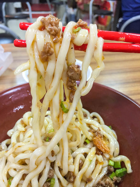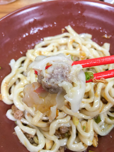 鎮店之寶,麵條近似拉麵口感,Q彈又富嚼勁;豬腿肉製成的肉燥在咀嚼中很有存在感,