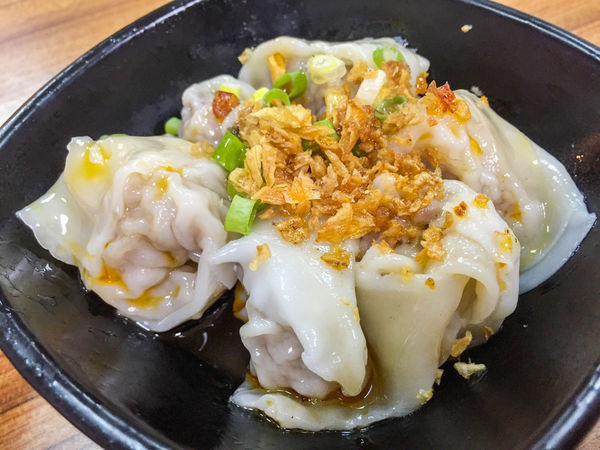 抄手個子不大但包得不錯看,上頭灑上大量油蔥酥頗添口感;老闆很貼心還把份量分成6顆或10顆,