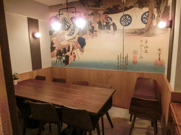 因為是和風義大利麵餐廳,所以牆上有大幅象徵日本的鯉魚圖也是很合理的。