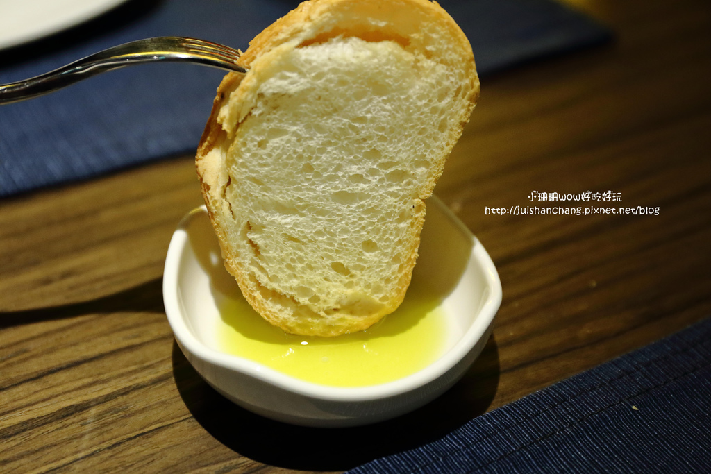 微熱的麵包沾上油醋醬特別好吃,香香的、酸酸的