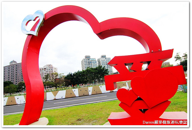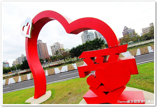 ▲走完心鎖步道,園區還有愛情裝置可以打卡拍照兼放閃,紅色超大愛心很有喜氣的感覺