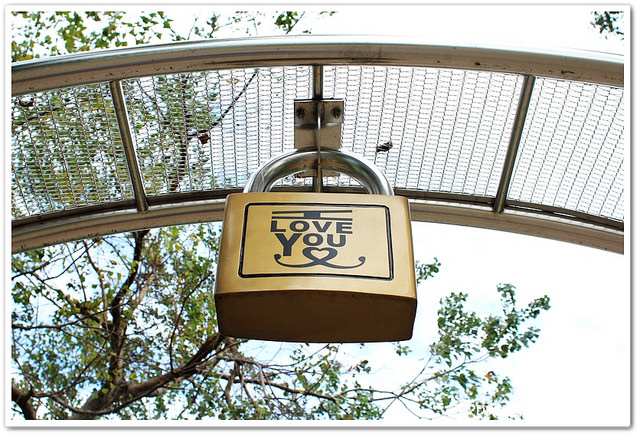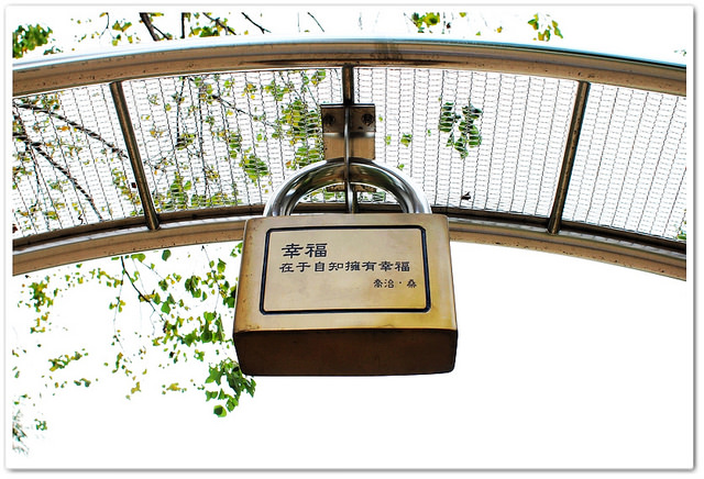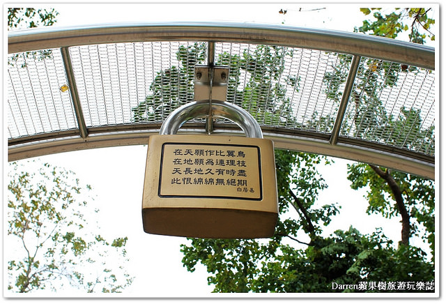 從心鎖步道另一邊拍過去,我才發現到原來每個心鎖的背面都有一段愛情話語