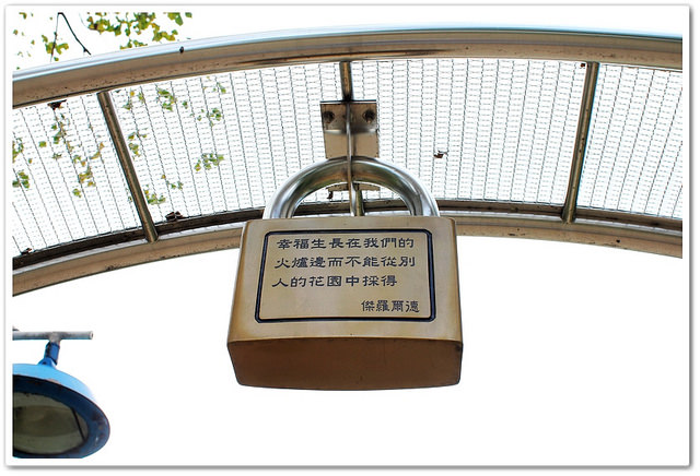 心鎖步道每道門都有著超大的心鎖,上面寫著愛情經典話語提醒著情人們~酸甜苦辣愛情嚐