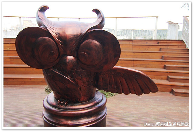 延續著虎頭山貓頭鷹樹屋群這裡也有貓頭鷹裝置,後面有觀景平台可以看到河畔鳥類出沒