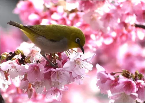 清晨細雨中的櫻花都帶著露水滴