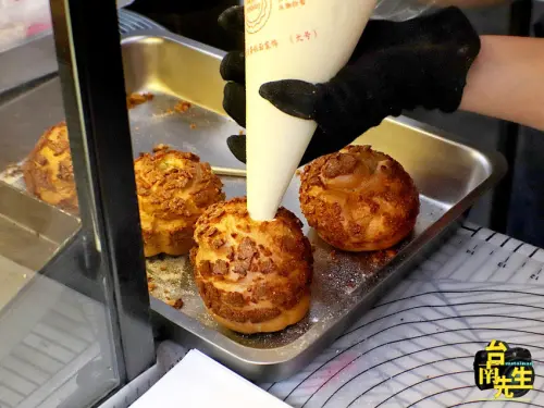 我那時是剛營業沒多久即購買,所以正好看到店員將此起士塔現放入烤箱內烤至外表金黃。