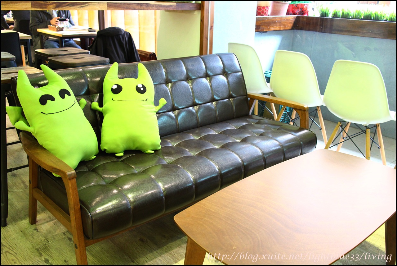 一進門就可以看到可愛的抹茶綠娃娃開心地在沙發上