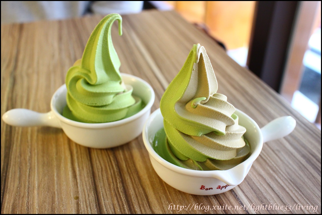 霜淇淋沒有因為是贈品就小氣縮水喔,滿滿的一杯,而且可以內用,這天得到的是抹茶+焙茶的雙口味綜合霜淇淋,非常柔順美味,吃完不口渴,抹茶口味很舒服,焙茶味道會更突出一點,這是本身茶的特性所致。雖然吃完霜淇淋之後肚子冰冰的,不過一肚子抹茶讓人超開心又滿足的啦!
