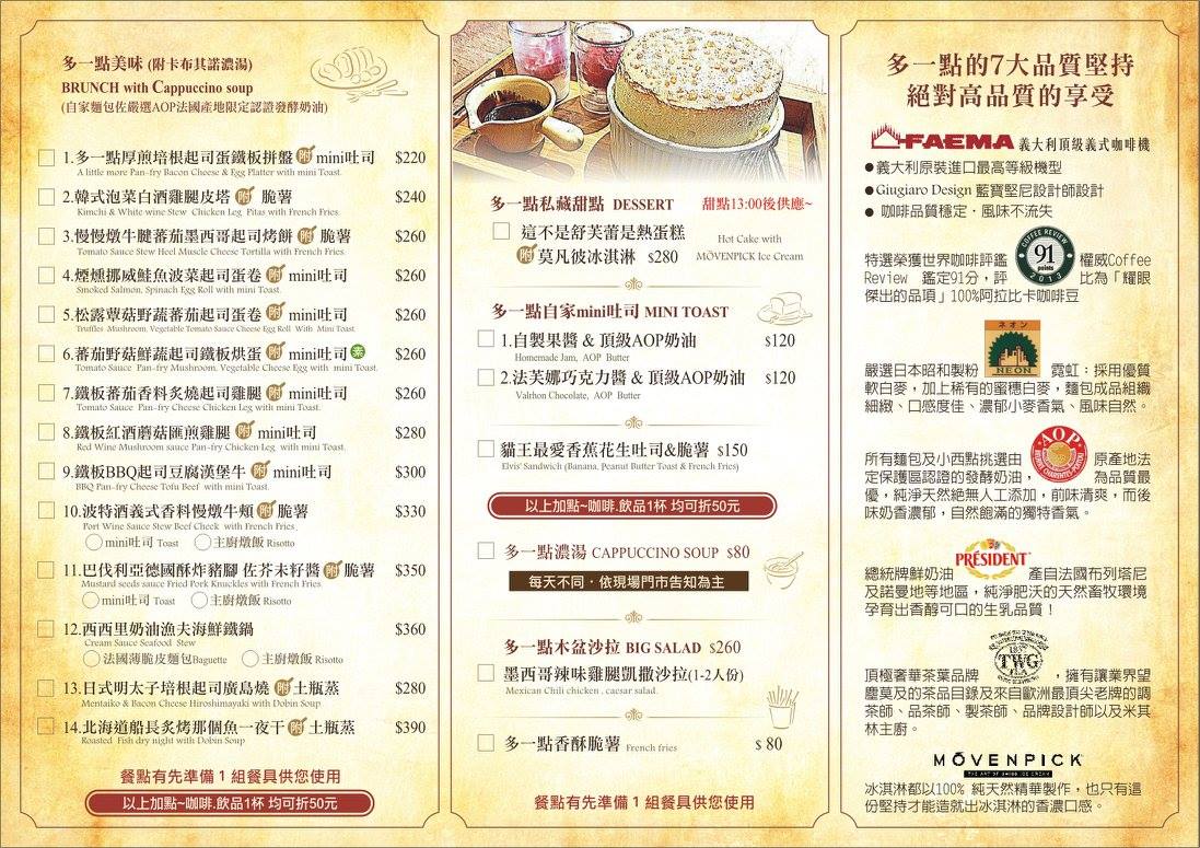 主打:早午餐/鐵板&燉菜/自家吐司/下午茶甜點/精品咖啡/ TWG 茶(附餐飲料可以抵$50)採自助式-動線很清楚。