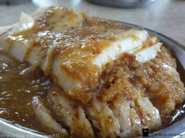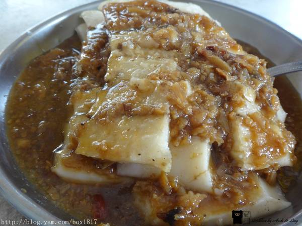 上圖這盤是綜合的,裡面有九層粿和糯米腸,在上面淋上滿滿的醬汁,