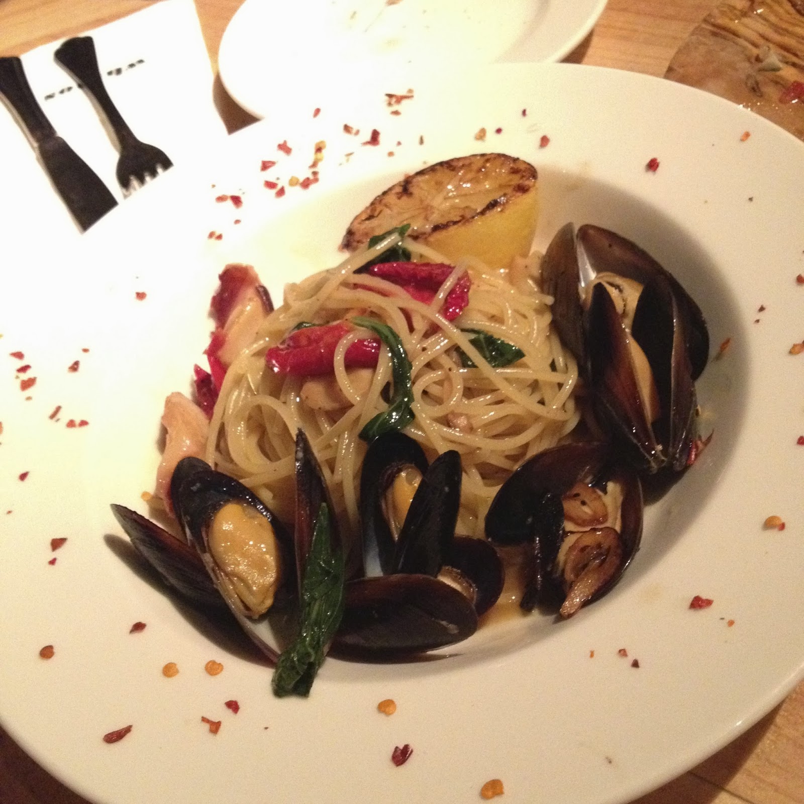當日的義大利麵是貽貝章魚義大利麵,